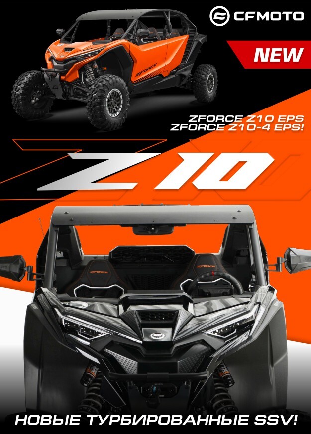 С гордостью анонсируем выход двух долгожданных новинок от CFMOTO, которые зададут новый стандарт в классе спортивных SSV (Side-by-Side Vehicle) — ZFORCE Z10 EPS и ZFORCE Z10-4 EPS.